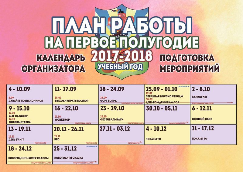 Календарь организатора 2018–2019 учебный год I полугодие
